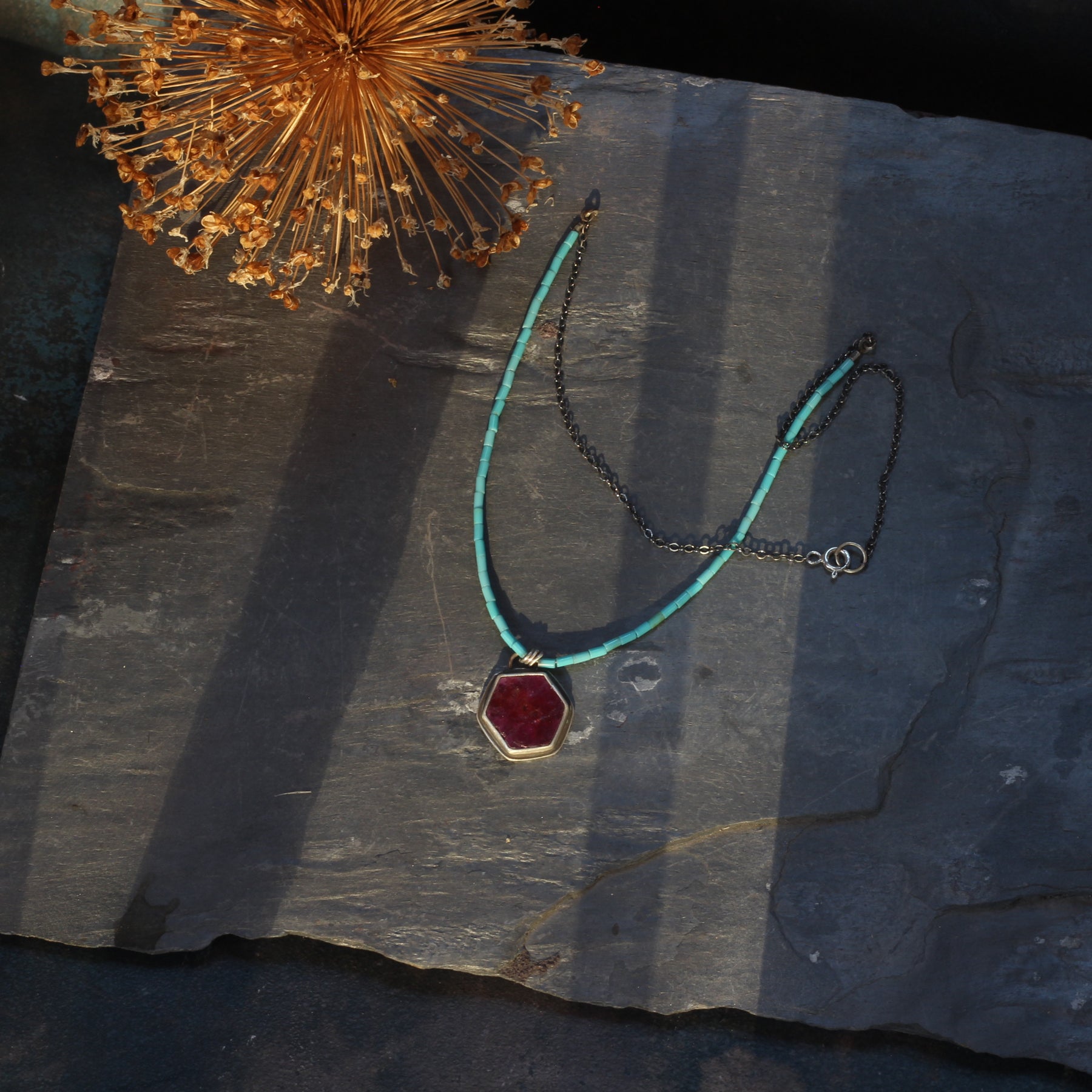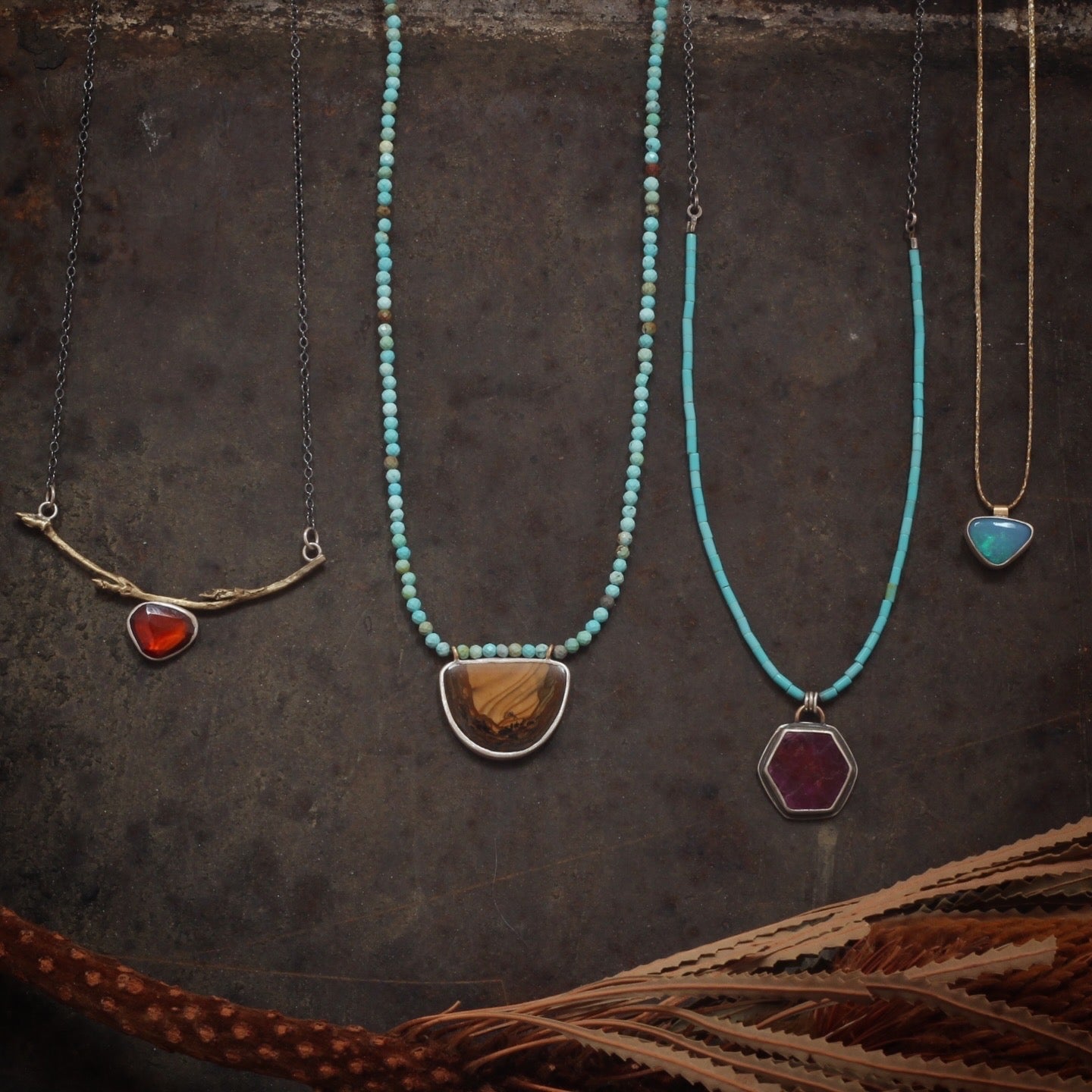 I create powerful, unique, and sacred adornment crafted from Earth's finest gifts. All of my jewelry is hand-made and hand-finished, from natural and often recycled or repurposed materials. I try to use every bit of metal on my bench and not let anything go to waste. In this way, all my pieces are somehow related - melted, remelted, cut, recut, weaving together so many stories being told through the jewelry. No two items are exactly alike and my pieces will have natural imperfections - I believe it is these slight imperfections that give hand fabricated items their soulful character and appeal.